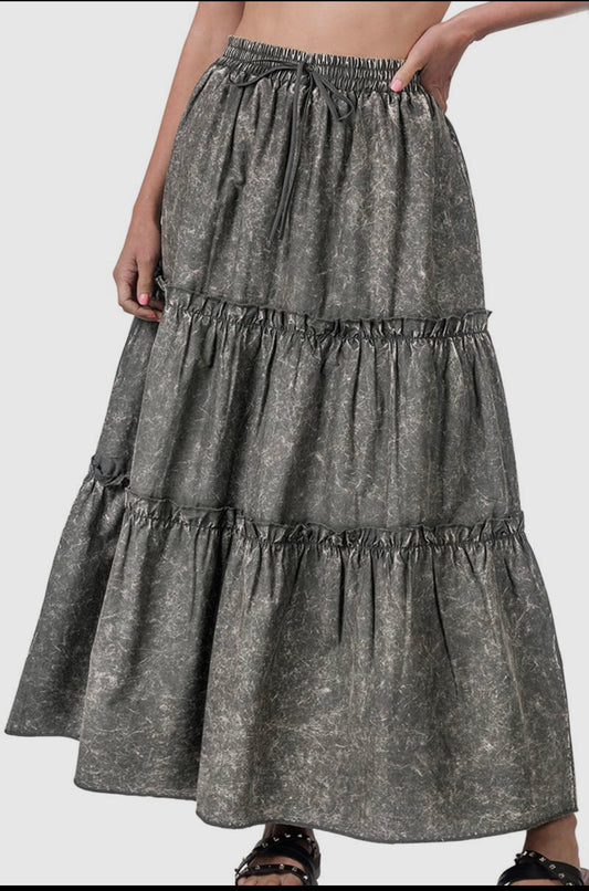 Acid Wash Drawstring Waist Tiered Ruffle