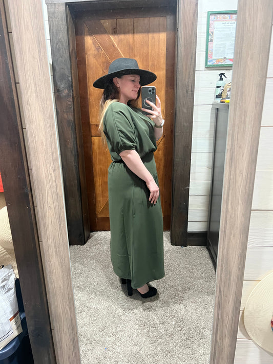 2 piece round neck solid puff sleeve set